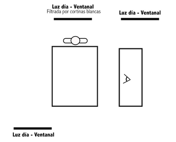 A partir del análisis de la foto de Dicorcia, comenzamos a pensar en el antes y el después de la situación retratada en esa foto. Coincidimos en la idea de cotidianidad, de generar un ambiente intimo. Es por eso que buscamos una cámara estática como "espiando" el día de cumpleaños de unx de lxs dos personajes. Inspirándonos en el anonimato de la foto de referencia, elegimos conservar esa característica a lo largo de todo el registro, siendo esta persona anónima la que retrata al personaje principal en este día. A partir de la presencia de la cámara de fotos en la obra original, transpusimos esta idea incorporando en el registro la idea de fotos tomadas por el personaje anónimo a través de la situación. Utilizamos planos mas amplios para el registro en video y planos cortos para las fotos, generando una cercanía entre ambos personajes. En relación a la iluminación generamos un ambiente de luz natural, utilizando ventanas amplias y rebotes para generar un clima de mañana.